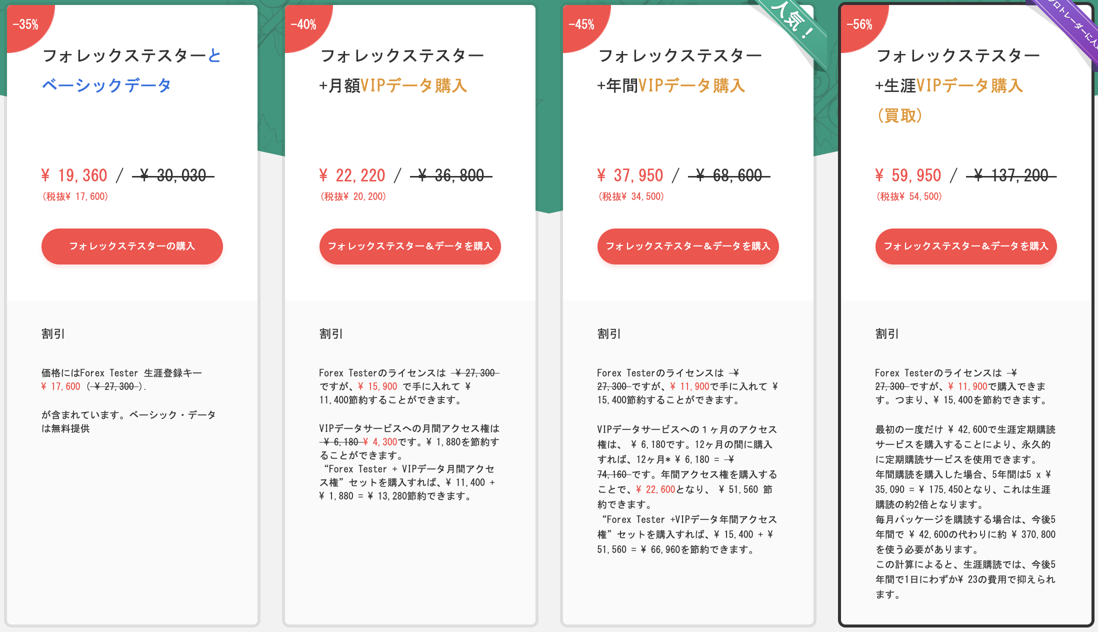 紹介する割引方法は購入時にクーポンコードを入力するというものです。下記に紹介する手順でクーポンコードを利用すると一定割合値引きした価格でForex Testerを手に入れることが可能です。このクーポンはセール価格に対しても、重ねがけでクーポン割引が適用されるのでお得です。